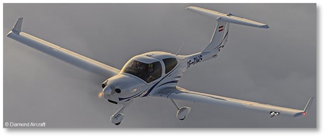 Bild links: Diamond DA40 XLT mit Kolbenmotor (AvGas 100LL)