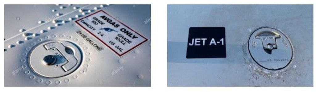 Um die Gefahr einer Falschbetankung von Luftfahrzeugen zu vermeiden, müssen die Zapfsäulen an Treibstoffanlagen und Betankungsfahrzeugen – gemäss der internationalen Norm EI Standard 1542 (Ausnahme für AvGas UL 91) – farblich wie folgt gekennzeichnet werden.