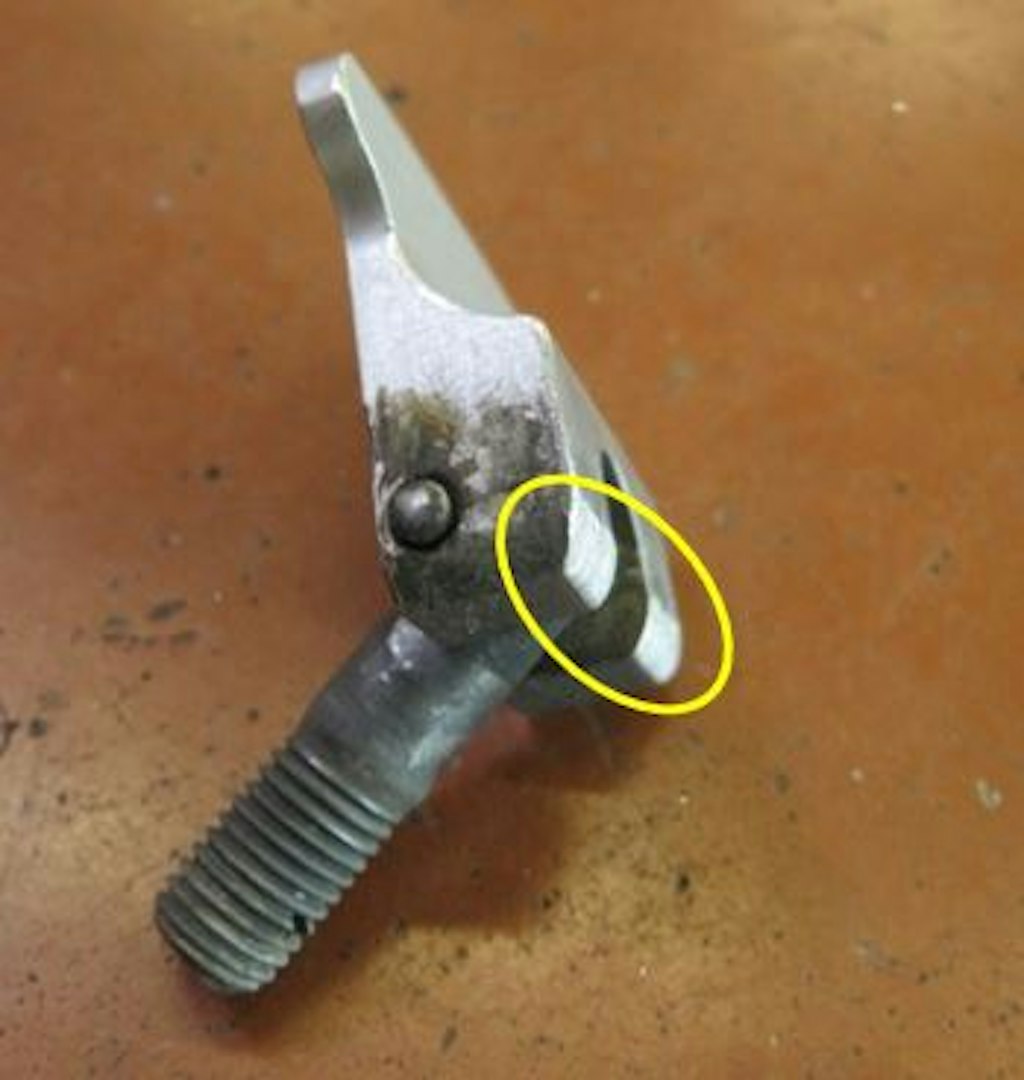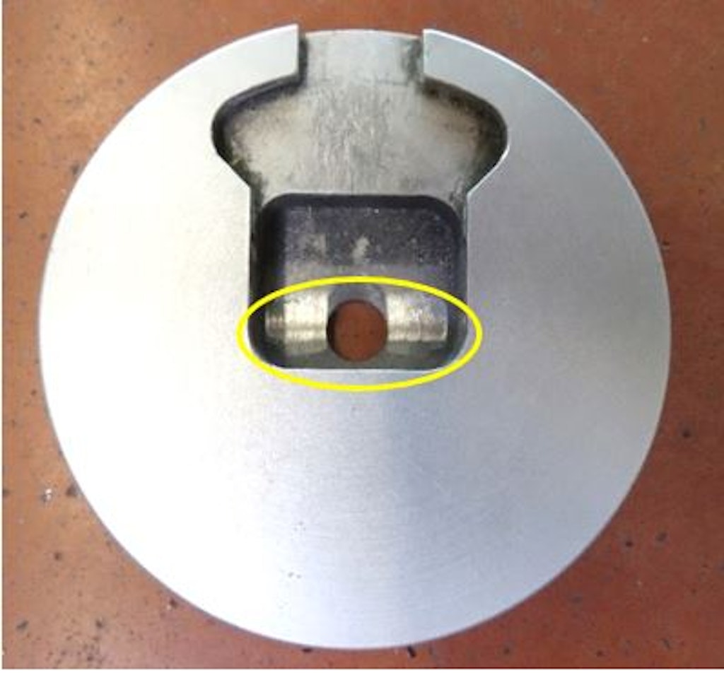 Abbildung 3: Verschleiss in der Aussparung im Tankdeckel und am Schnellspanner (gelbe Kreise).