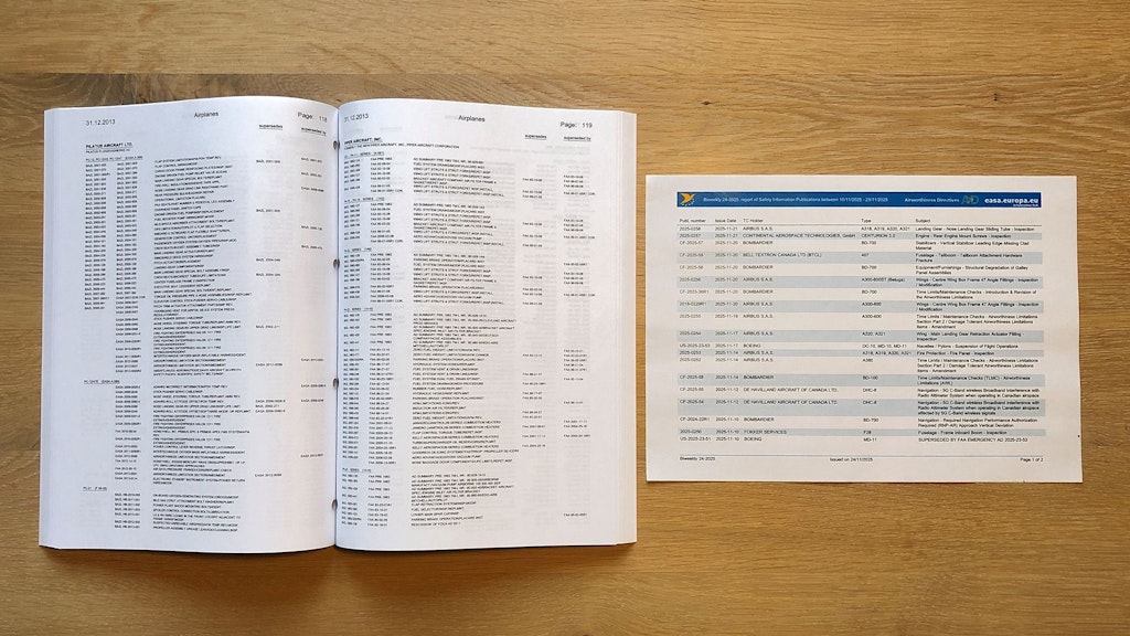 Die nachstehende Liste erfasst Lufttüchtigkeitsanweisungen (LTA), die bis zum auf Seite A vermerkten Ausgabedatum veröffentlicht wurden. Berücksichtigt sind jene Baumuster, die aktuell im Schweizerischen Luftfahrzeugregister registriert oder reserviert sind. Die Liste ist ein Hilfsmittel und dient zur übersichtlichen Darstellung der für ein Baumuster in Frage kommenden LTA. Verbindlich sind die Angaben der einzelnen LTA.
