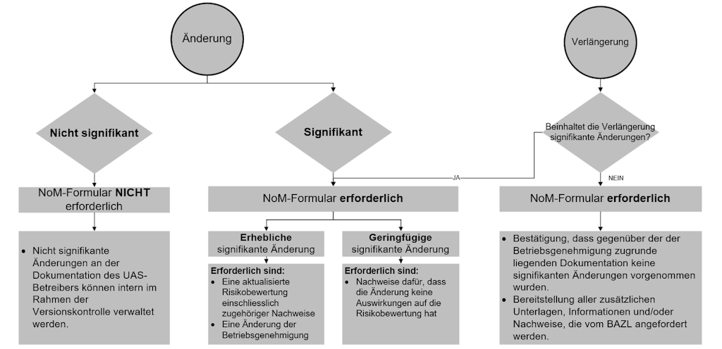 Sofern ein Formular zur Änderungsanzeige (NoM) erforderlich ist, ist der Antrag mindestens einen Monat vor dem geplanten Umsetzungsdatum mittels des vorgesehenen Formulars einzureichen.