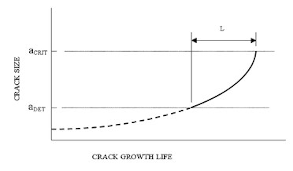 Um die Unzuverlässigkeit (Streuung) der Rissentstehung (im Mikro-Bereich) auszuschliessen, wird bei der Riss- Fortschrittsberechung bereits von einem bestehenden Anriss von 1.27 mm (0.05 Zoll) Länge (sogenannter Herstellungsfehler) ausgegangen: