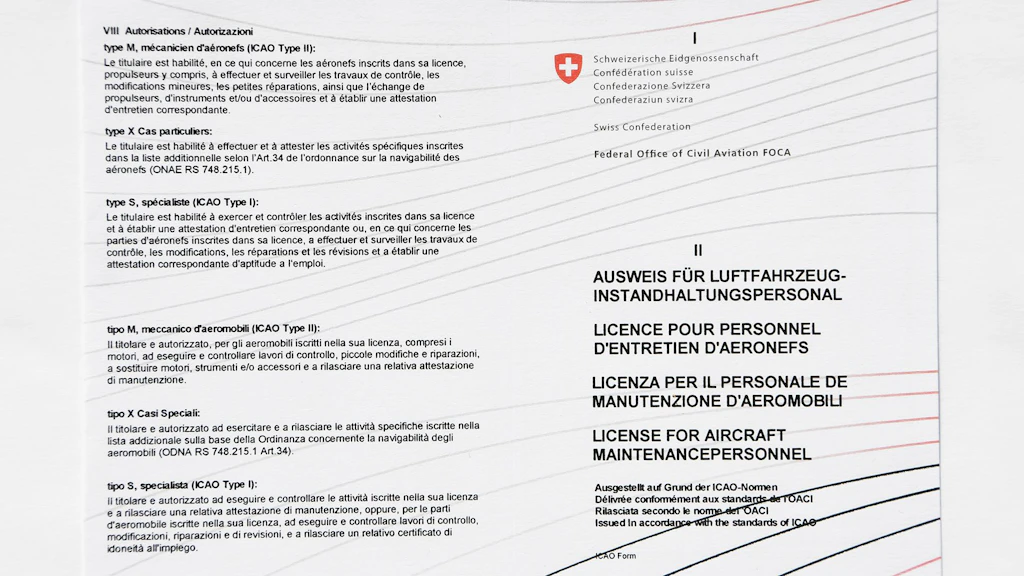 Ces licences sont régies par l’ordonnance du DETEC sur le personnel préposé à l'entretien des aéronefs (OPEA ; RS 748.127.2) et les directives applicables (communications techniques).