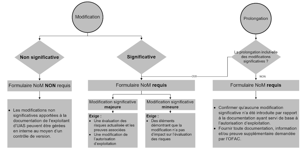 Lorsqu’un formulaire de notification de modification (NoM) est requis, la demande doit être soumise au moyen du formulaire dédié au moins un mois avant la date prévue de mise en œuvre.