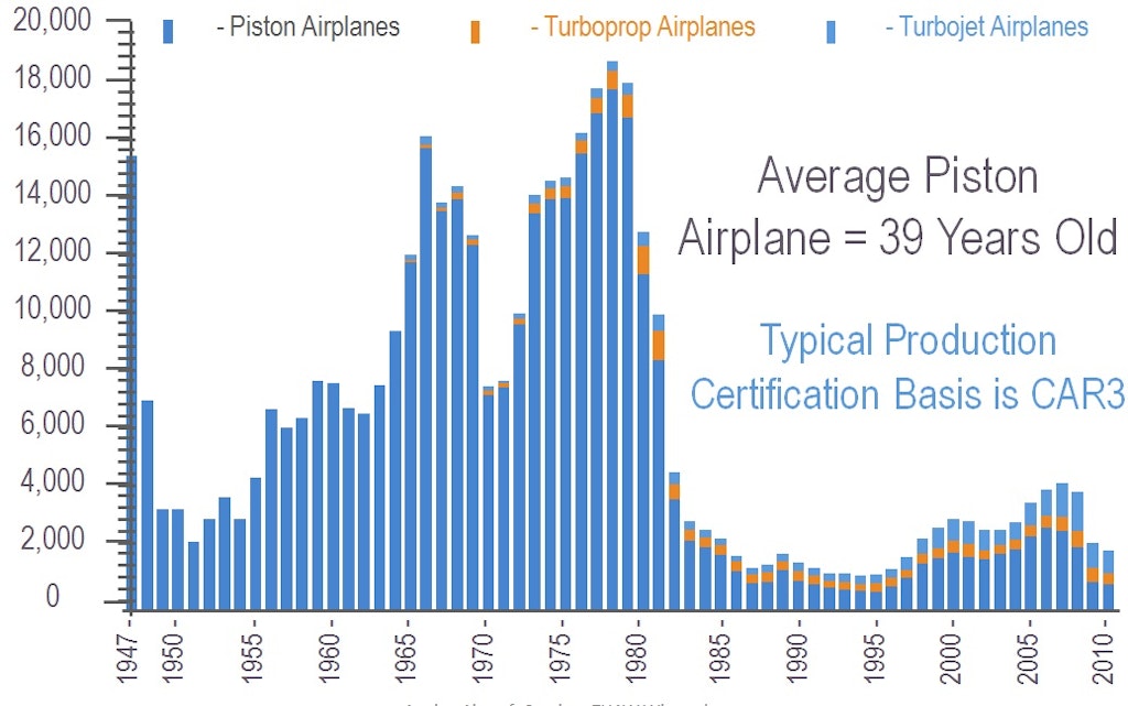 La problématique des aéronefs vieillissants reste encore trop méconnue des pilotes et des organismes de maintenance. En raison de la chute de la production d’avions dans les années 80, les aéronefs restent en service plus longtemps, bien plus longtemps en tout cas que ne l’imaginaient leurs concepteurs. Résultat : l’âge moyen de la flotte d’aéronefs augmente d’année en année et atteindra bientôt 40 ans pour la flotte des appareils de l’aviation générale ! Pour que la sécurité soit garantie, ces vétérans demandent d’avantage de soins (programmes d’inspection supplémentaires) l’alternative étant de les remplacer par des appareils